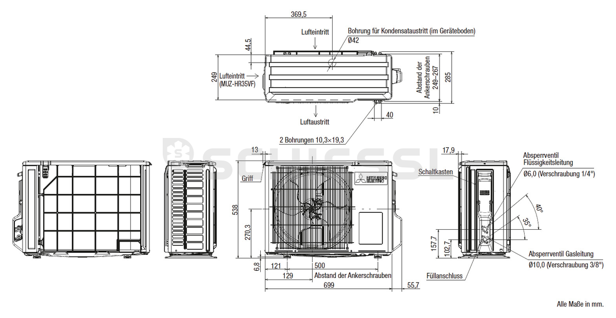 1x Außengerät: Mitsubishi Klima 2,5kW R32