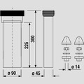 Wand-WC-Anschlussgarnitur PE d:90mm m.2 Abdeckkappen verchromt Länge:180mm